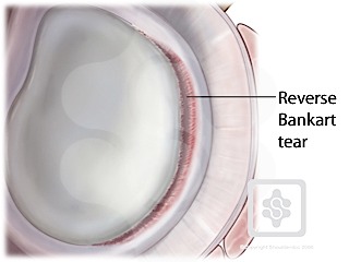 As mentioned before, a labral ‘tear’ doesn’t have to be a ‘tear’. The name is commonly used for ‘fraying’ or a detachment of the glenoid labrum from the bone. If you fell down and your arm dislocated… then the humeral head is what transfers the force to the labrum, pushing it off of the glenoid. Reverse Bankarts are usually from repetitive stresses in OH athletes such as pitchers or volleyball players, where the biomechanics differ.